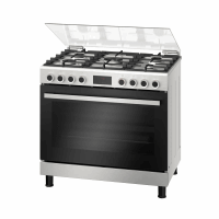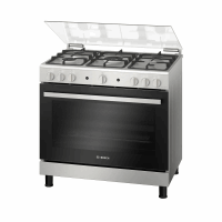 بوتجاز بوش 90*60 سم سيريس 8 ، 5 شعلة ، شاشة ديجيتال ، حوامل زهر ، مروحه فرن ، تنظيف ذاتى - HIZ5G7W51S استانلس ستيل