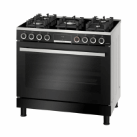 بوتجاز بوش 90×60 سم سيريس 8 ، 5 شعلة ، شاشة ديجيتال ، امان تام ، حوامل زهر ، مروحه فرن ، HJY5G7V61S أسود
