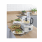 This model includes a comprehensive set of accessories such as a small bowl, citrus juicer, hand whisk, dough tool, coarse and fine grating disc, thick and thin slicing disc, peeling disc, French fries disc, and a flat spatula, giving you maximum convenience and versatility.